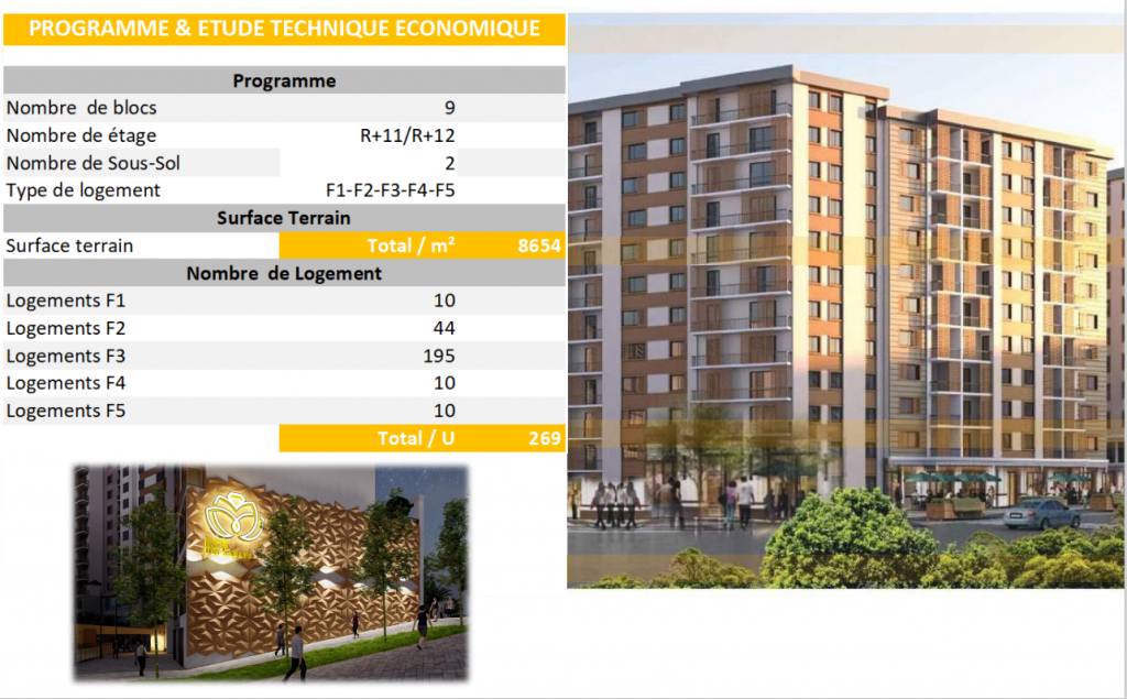Turboprom à pour mission la construction de la résidence ROSE DES SABLES. Cette dernière est située à Bir El Djir, Parcelle N°527 Section 03 à Belgaid, Oran. Ce projet regroupera 269 Logements promotionnels.